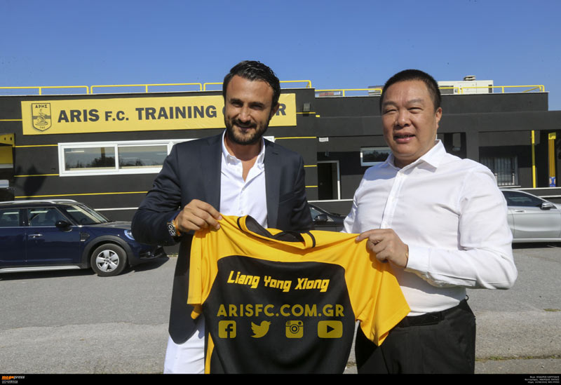 * Στη φωτογραφία ο πρόεδρος της ΠΑΕ ΑΡΗΣ, Θόδωρος Καρυπίδης, παραδίδει στον Xiong Yong Liang μια αναμνηστική φανέλα της ομάδας μας με το όνομά του.