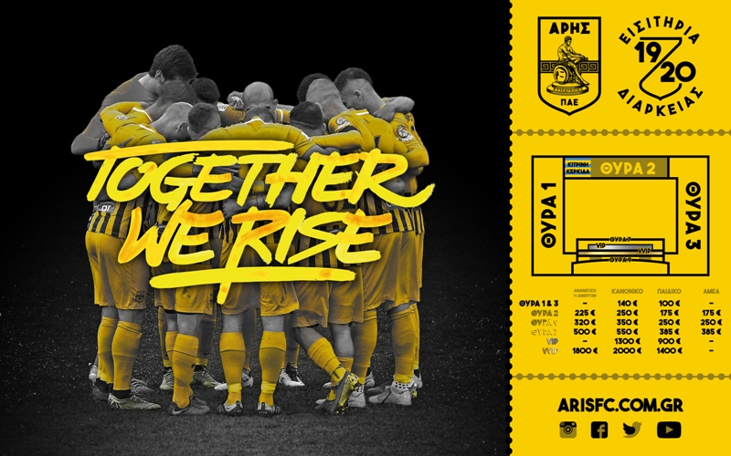 Παράλληλα, η ΠΑΕ ΑΡΗΣ ενημερώνει ότι από αύριο, Τετάρτη (29/05), ξεκινάει κανονικά η αγορά των ελεύθερων θέσεων για την αγωνιστική περίοδο 2019-2020.