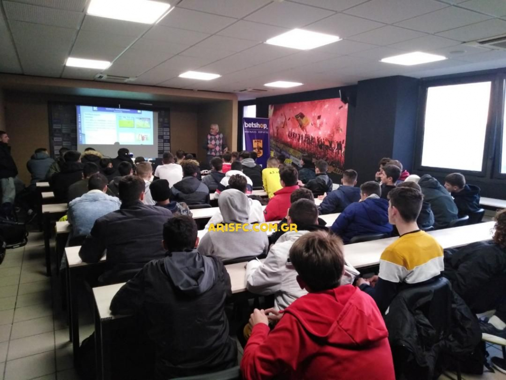 Το σεμινάριο παρακολούθησαν σύσσωμες οι ομάδες των τμημάτων υποδομής της ΠΑΕ ΑΡΗΣ με τα τεχνικά επιτελεία τους.