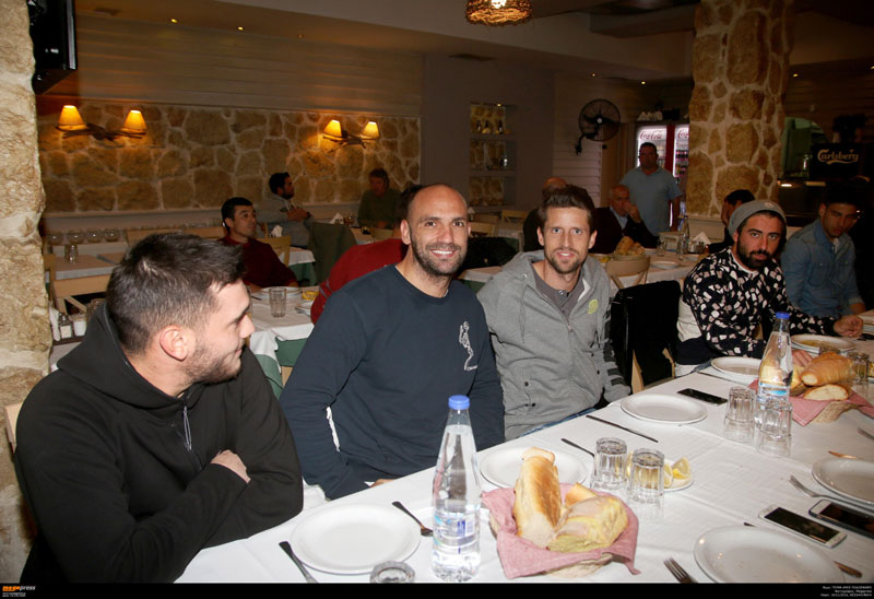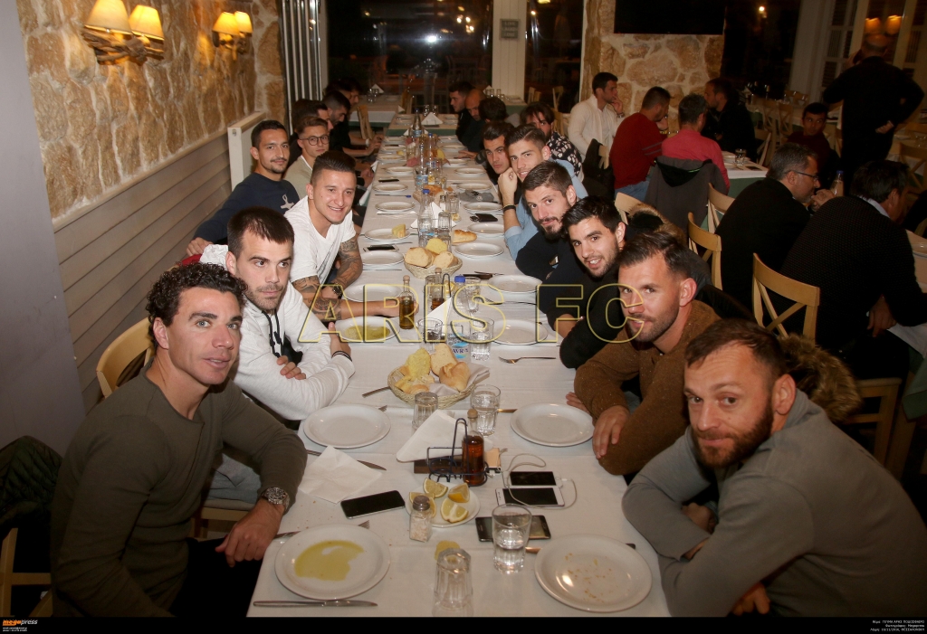 Σε μια ζεστή και οικογενειακή ατμόσφαιρα, οι ιδιοκτήτες της ψαροταβέρνας «Όστρακο», που βρίσκεται στην παραλία των Ν. Επιβατών, Χριστόφορος Νικολαΐδης και Σάκης Κελεμένης, παρέθεσαν απόψε δείπνο στην τεχνική ηγεσία, στους ποδοσφαιριστές και στα στελέχη του αγωνιστικού τμήματος της ΠΑΕ ΑΡΗΣ.