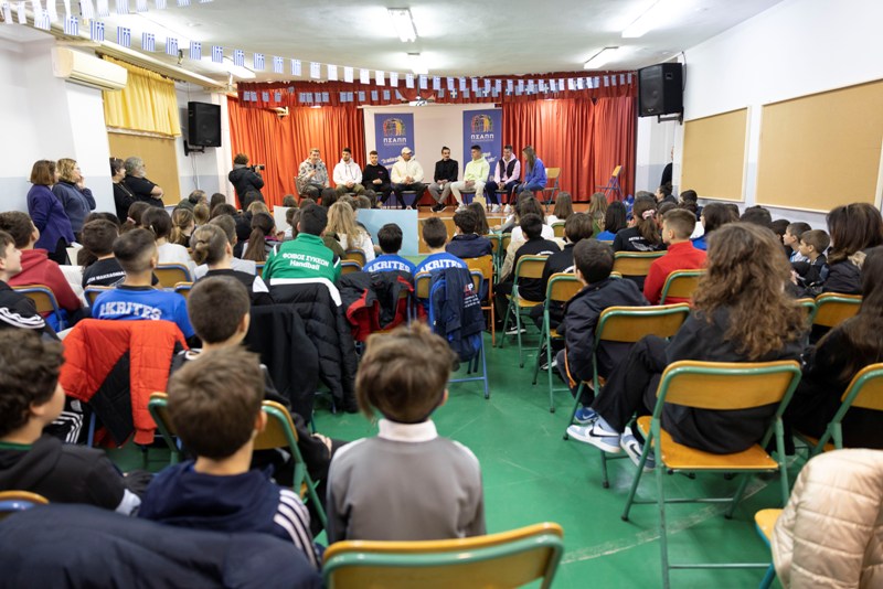 Οι ποδοσφαιριστές του ΑΡΗ, Λάζαρος Χριστοδουλόπουλος και Μάριος Σιαμπάνης, έδωσαν το παρών σε εκδήλωση του ΠΣΑΠΠ στο 4ο Δημοτικό Σχολείο Συκεών με θέμα: «Γίνε η αλλαγή που θέλεις να έρθει…».