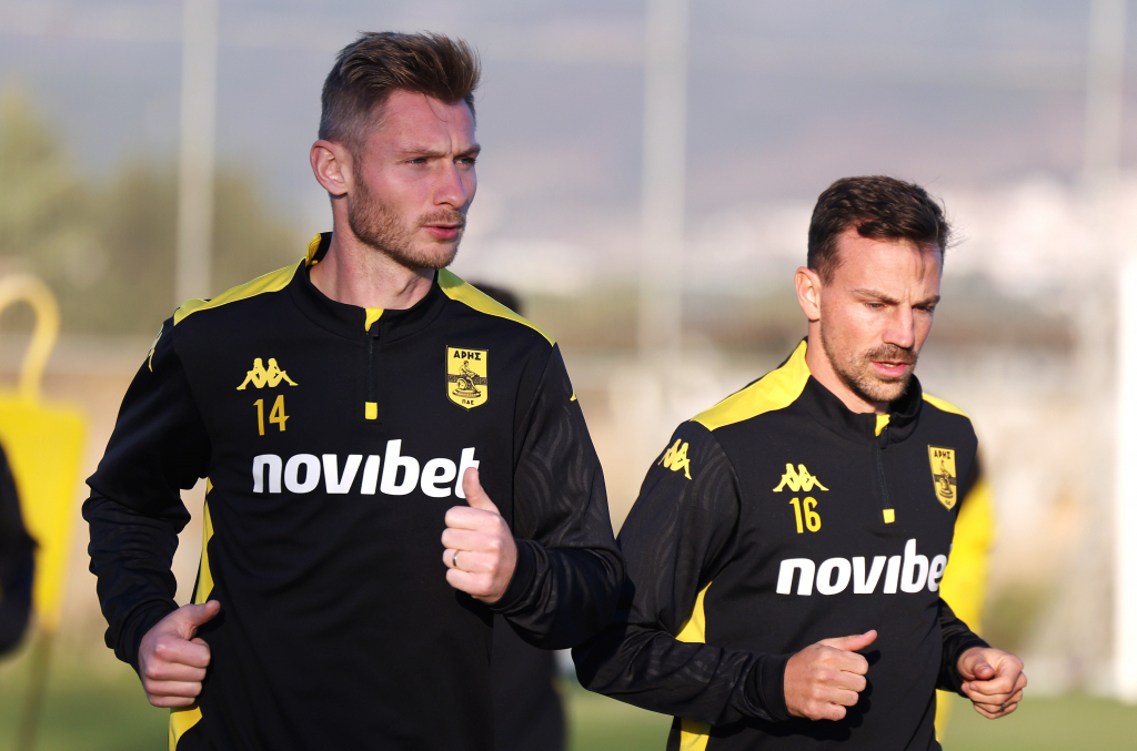 Οι ποδοσφαιριστές του ΑΡΗ προπονήθηκαν το πρωί στο Δασυγένειο Αθλητικό Κέντρο (ενεργοποίηση με μπάλα, αμυντική λειτουργία και πιεστικά παιχνίδια σε μικρό χώρο).