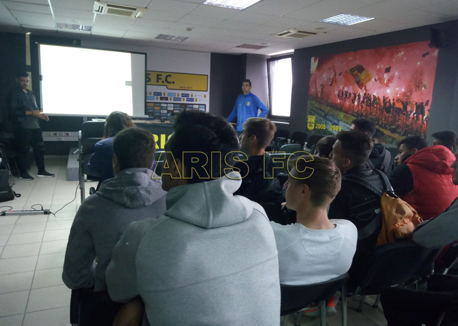 Στην αίθουσα Τύπου του Κλεάνθης Βικελίδης πραγματοποιήθηκε σεμινάριο από το ιατρικό επιτελείο της ΠΑΕ ΑΡΗΣ για τα τμήματα υποδομής της ομάδας μας με θέμα την φαρμακοδιέγερση. Κεντρικός ομιλητής ήταν ο φυσικοθεραπευτής της ΠΑΕ ΑΡΗΣ, Επαμεινώντας Βουτσελάς.