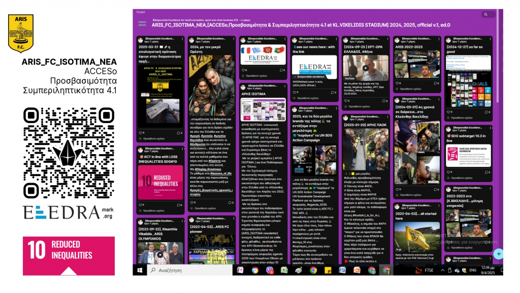 Με το project-ομπρέλα «ΑΡHΣ ISOTIMA» για ένα ποδόσφαιρο για όλους, με τον Σχολιασμό Ισότιμης Ακουστικής περιγραφής ADeC)))livex, που ξεκίνησε στο οικοσύστημα του αθλητισμού στην Ελλάδα από το Κλεάνθης Βικελίδης τον Απρίλιο του 2022.
