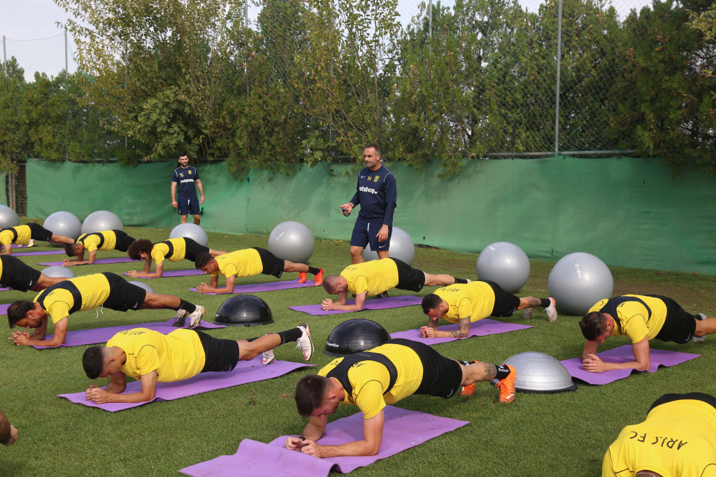 Διπλή προπόνηση (πρωί-απόγευμα) στις εγκαταστάσεις του Δασυγένειου Αθλητικού Κέντρου περιελάμβανε το σημερινό πρόγραμμα των ποδοσφαιριστών του ΑΡΗ.