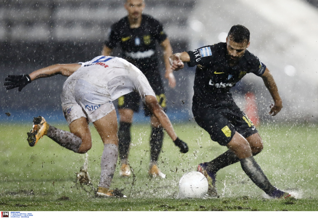 Ο βαρύς αγωνιστικός χώρος από την καταρρακτώδη βροχή ήταν το σημείο αναφοράς στη σημερινή αναμέτρηση του ΑΡΗ με τον ΠΑΣ Γιάννινα, στο πλαίσιο της 16ης Αγωνιστικής του πρωταθλήματος Super League Interwetten της αγωνιστικής περιόδου 2020-2021.