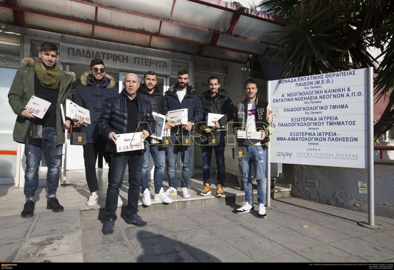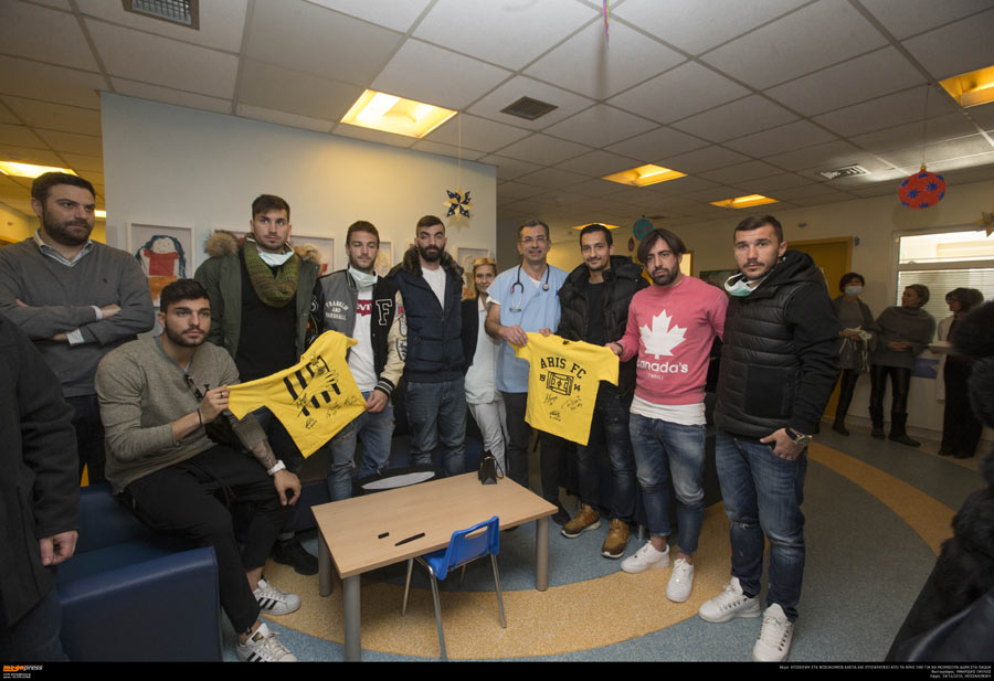 Αντιπροσωπεία ποδοσφαιριστών της ομάδας μας, αποτελούμενη από τους Ανδρέα Τάτο, Σωκράτη Διούδη, Μπράνα Ίλιτς, Λούκα Μιλούνοβιτς, Χρήστο Ιντζίδη, Αντώνη Καπνίδη και Μπάμπη Παυλίδη, συνοδευόμενοι από εκπροσώπους της ΠΑΕ ΑΡΗΣ και του μεγάλου μας χορηγού, στο πλαίσιο του προγράμματος κοινωνικής εταιρικής ευθύνης, επισκέφτηκαν σήμερα τα παιδοογκολογικά τμήματα των νοσοκομείων «Ιπποκράτειο» και «ΑΧΕΠΑ», όπου μοίρασαν δώρα και χαμόγελα στα παιδιά.