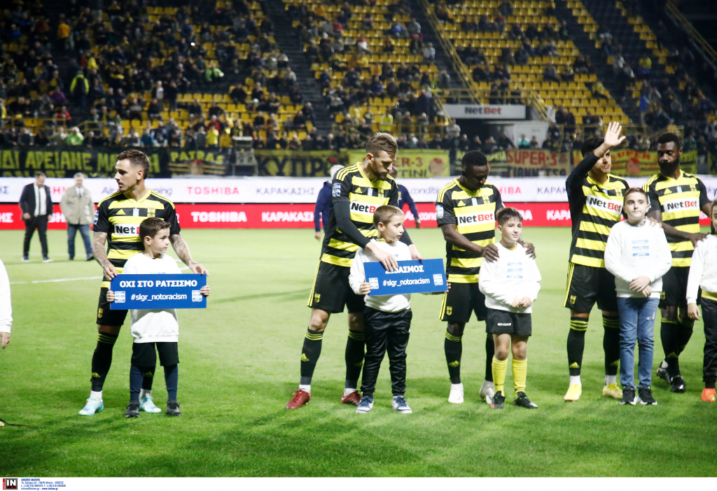 Στην έναρξη του αγώνα, οι ποδοσφαιριστές και τα παιδιά και των δύο ομάδων, αλλά και οι διαιτητές με τη στάση τους δήλωσαν ότι στο ποδόσφαιρο δεν υπάρχει χώρος για βία και διακρίσεις.