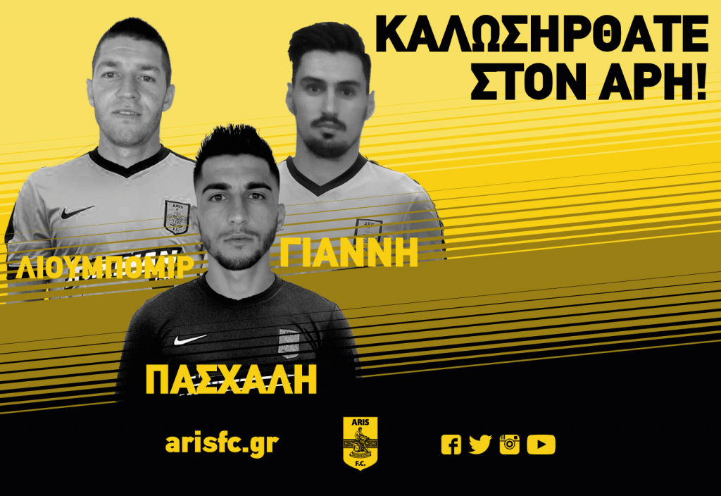 Η ΠΑΕ ΑΡΗΣ ανακοινώνει την απόκτηση των Λιούμπομιρ Στεφάνοβιτς, Γιάννη Πασά και Πασχάλη Κάσσου.