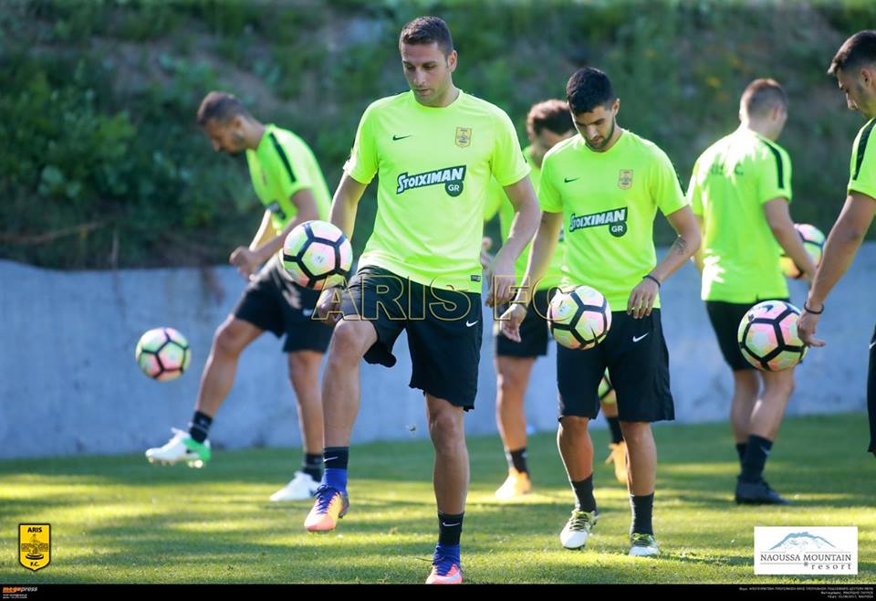 Διπλή προπόνηση (πρωί και απόγευμα σε γκρουπ) για τους ποδοσφαιριστές του ΑΡΗ περιελάμβανε το πρόγραμμα της 2ης μέρας του βασικού σταδίου της προετοιμασίας, που διεξάγεται στα Τρία Πέντε Πηγάδια Νάουσας.