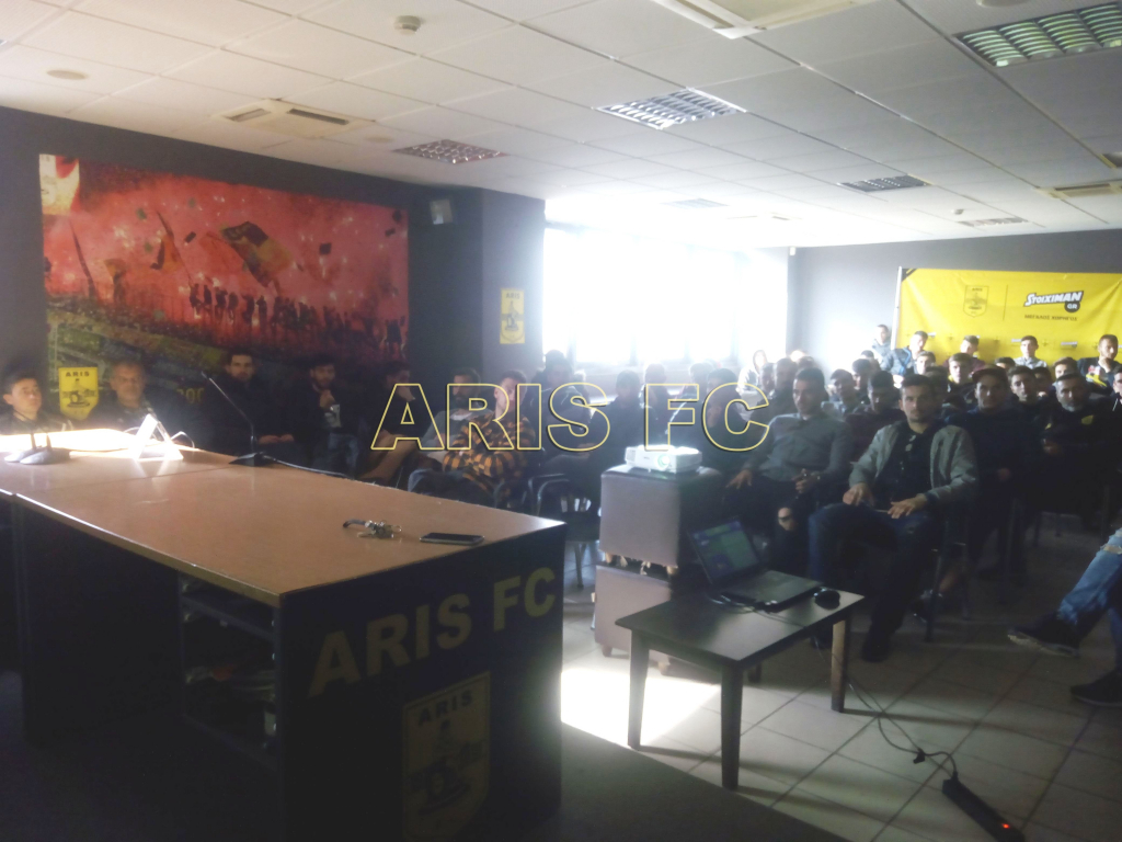 Το σεμινάριο παρακολούθησαν σύσσωμες η πρώτη ομάδα και η ομάδα U-19 του ΑΡΗ, που συμμετέχει στο αντίστοιχο πρωτάθλημα Νέων της Football League, καθώς και τα τεχνικά επιτελεία τους.