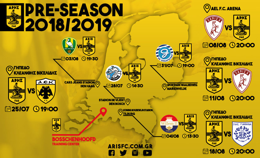 Το Σάββατο 28 Ιουλίου με αντίπαλο την FC Den Bosch (Stadion De Vliert στο Den Bosch, 14:30 τοπική ώρα).